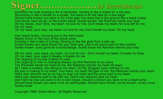 HERRETHERIAN LYRICS: COPYRIGHT-ELENA HERRE - ALL RIGHTS RESERVED